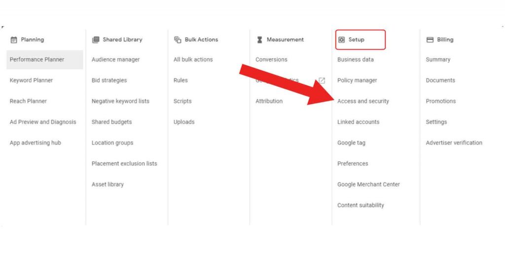 2. Klicke unter der Rubrik „Setup“ auf „Zugriff und Sicherheit“.